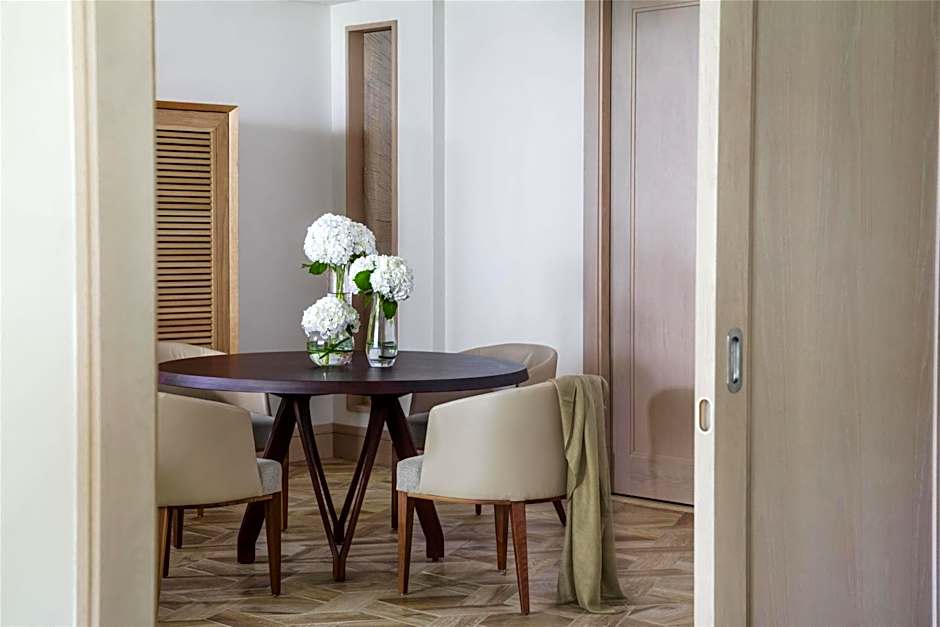 Your airy open-plan lounge and dining space features contemporary furnishings in natural Mauritian hues. Your one-bedroom Ocean Suite also benefits from a guest washroom, and your choice of a king-sized or two queen-sized beds.