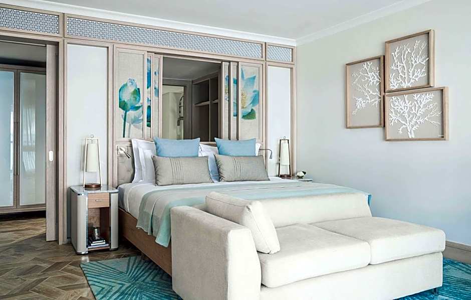 Inside, your bedroom is spacious, with an intuitively designed dressing room and elegant marble bathroom, complete with twin basins, separate tub and shower, and bathed in natural light. Your master bedroom, complete with king beds with modern Mauritian furnishings designed for pure comfort.